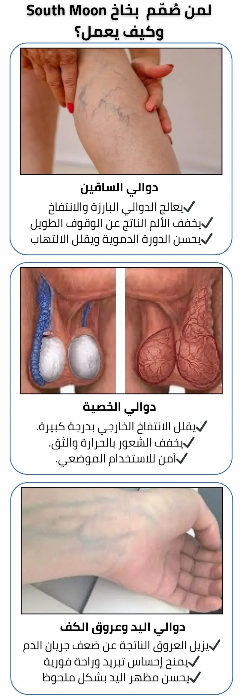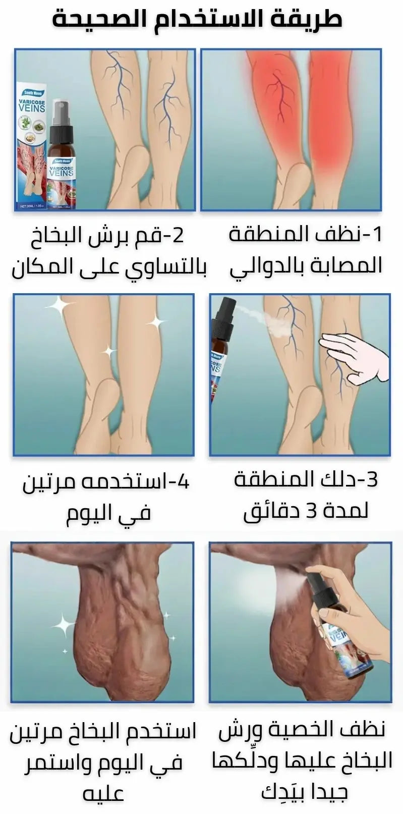 نعم البخاخ صالج لجميع أنواع الدوالي سواء كانت خفيفة أو عميقة بما فيها دوالي الخصية والساقين واليدين